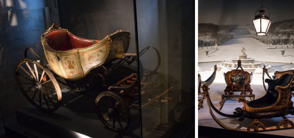 In addition to the standard royal coaches, you can also see several unique pieces that offer a glimpse into royal life. The children had their own miniature coaches to play with (which were often pulled by sheep). Additionally, the royal family’s sled collection is on display. During the winter months, they would race sleds in the snow-covered gardens.